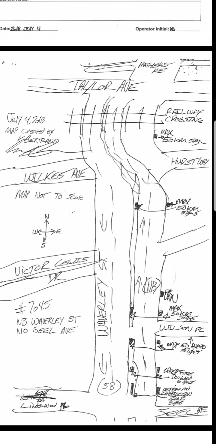 The City / Crown / Operator will likely take the simple position that they were shooting up to 600 meters ahead. No doubt most or all tickets were issued just north of Victor Lewis – even though they were parked south of it. We have one photo with vehicle in or at the very edge of VL intersection. Another issue is – The 50kph zone was never intended for south of there. To accommodate the best parking spot to the mobile unit – They stretched it out. This may not be a court defence, it maybe just a matter we can take issue with directly to the city.
